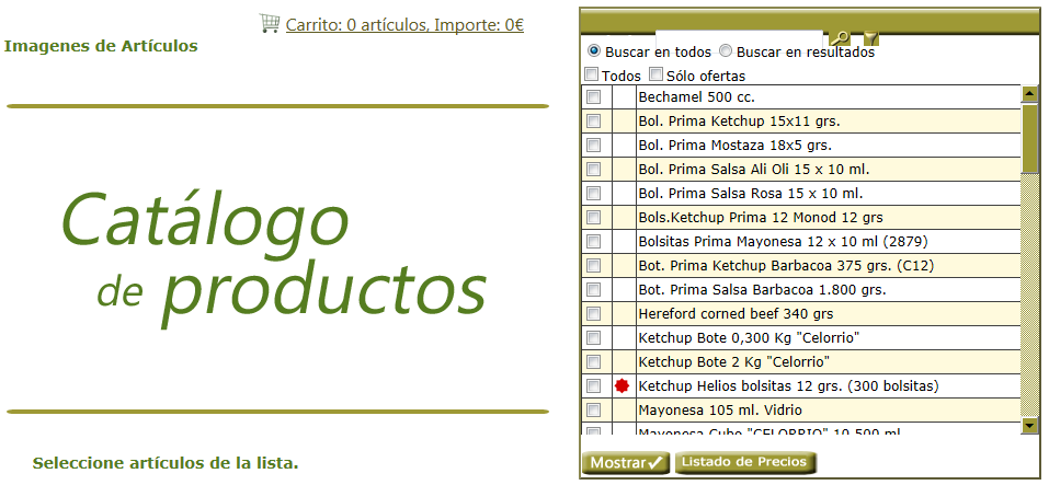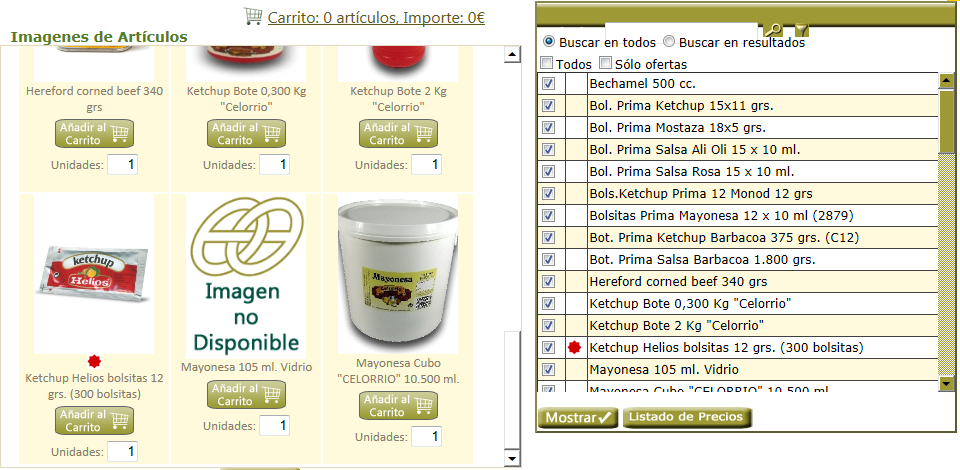 -Seleccionar los que se quieran ver y hacer clic en el botón MOSTRAR. Aparecerá a la izquierda una galería de las imágenes de los artículos que hemos seleccionado: