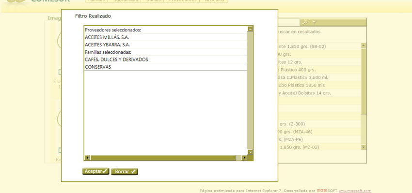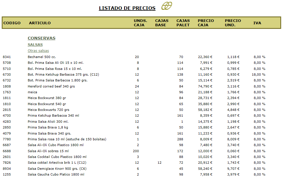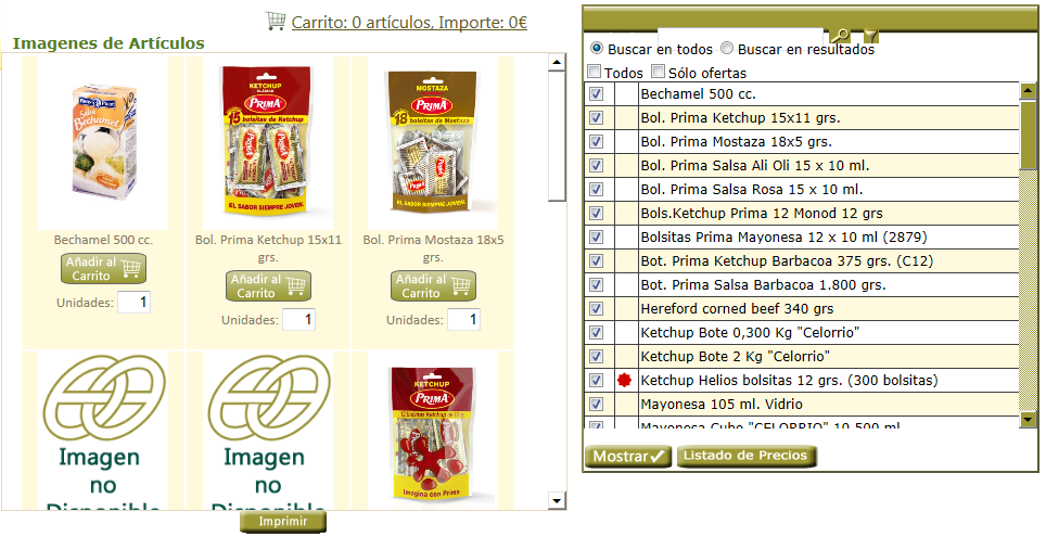 -Pulsando sobre el botón LISTADO DE PRECIOS podremos visualizar en otra página un listado con los precios de los artículos que hemos seleccionado en la búsqueda de artículos.