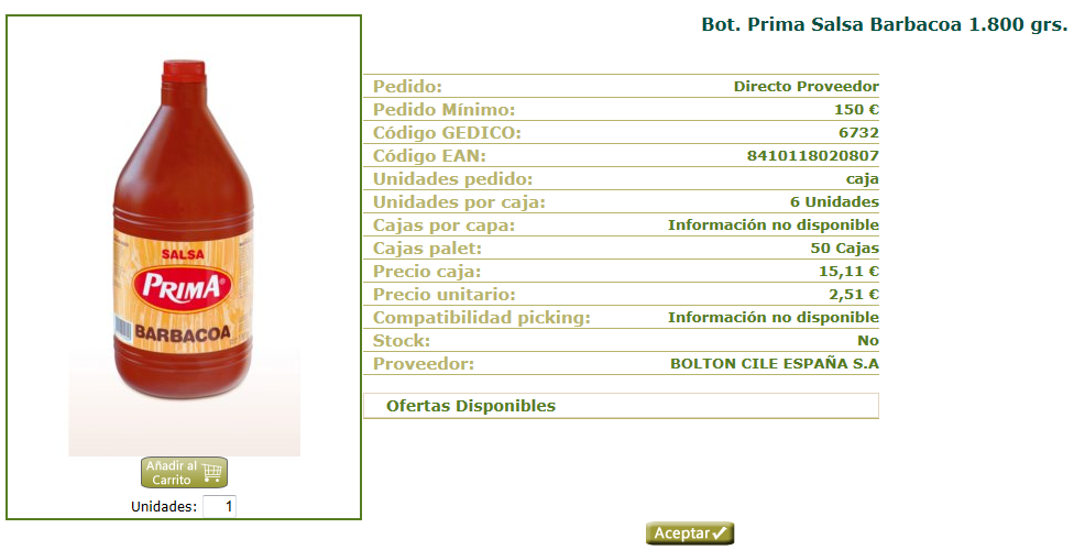 donde previamente podemos indicar el número de unidades a añadir al carrito.