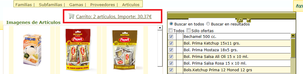 -Podemos realizar un filtro seleccionando SOLO OFERTAS en el panel de artículos. Imagen "Opciones de Búsqueda"