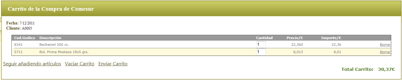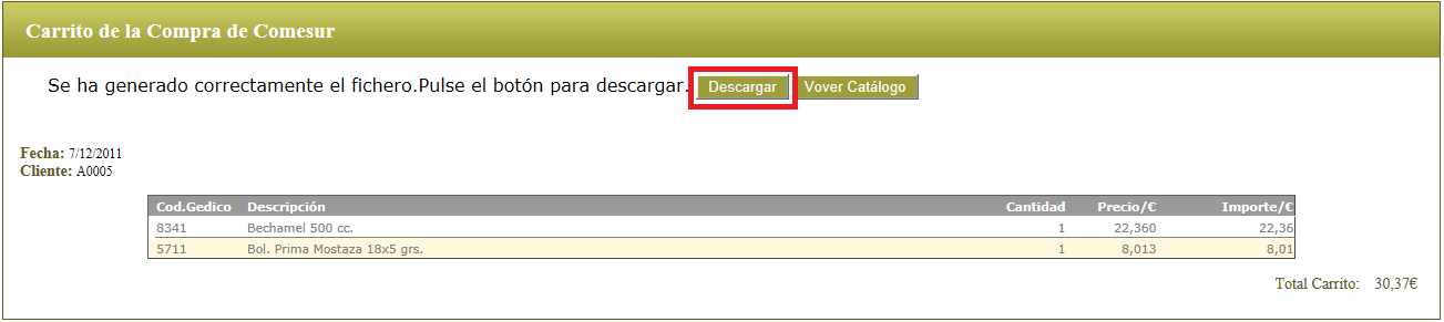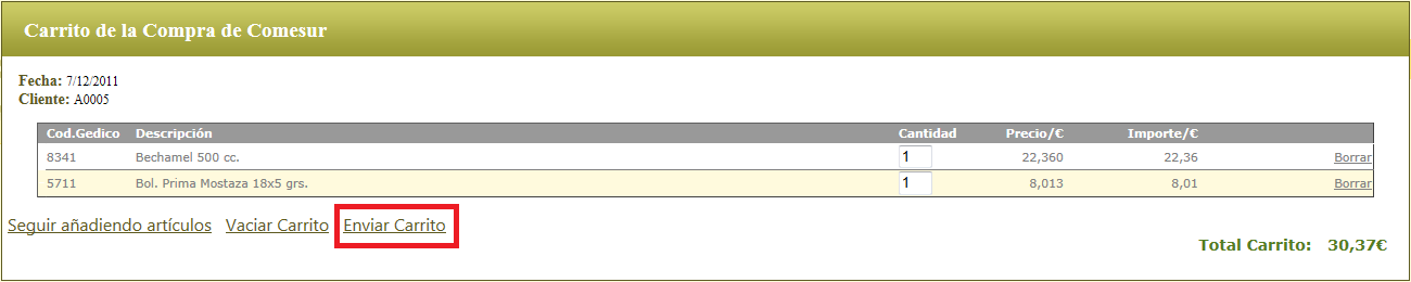 . Enviar el carrito (generar fichero para importar en Gedico).